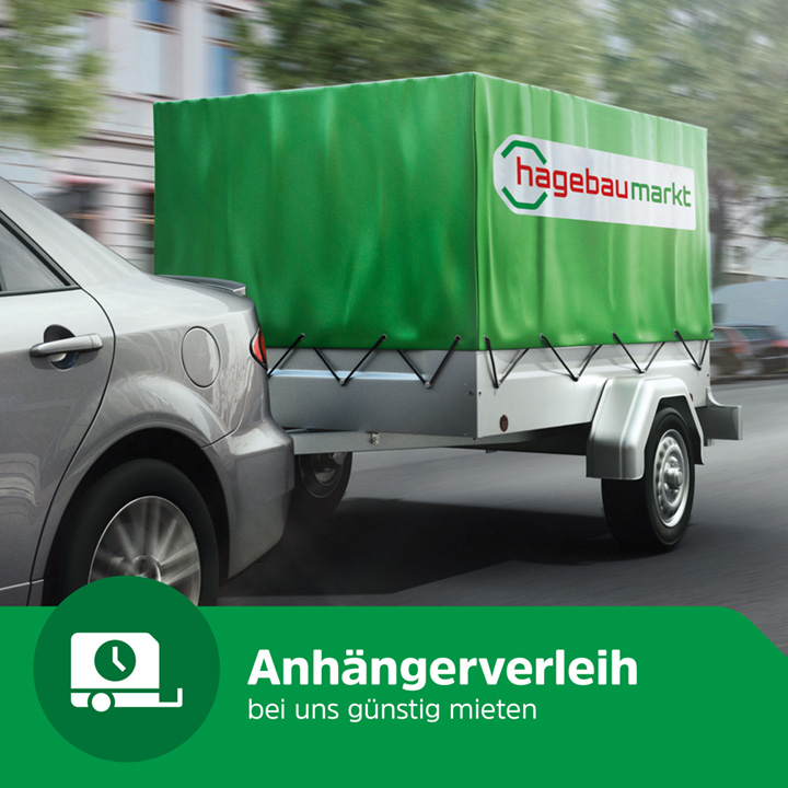 Anhängerverleih im BZN Hagebau: Miete schnell und günstig einen Anhänger. Ideal für den schnellen Transport von Baustoffen, Holz, Pflanzen oder sperrigen Einkäufen. Einfach an der Info mieten, sofort laden und Projekte bequem nach Hause bringen.