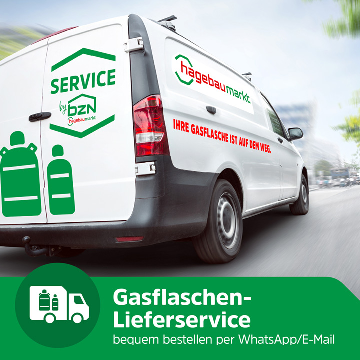 Gasflaschen‑Lieferservice im BZN hagebaumarkt: Einfach per WhatsApp 04941 608200 oder E‑Mail info@hagebaumarkt-aurich.de bestellen. Die Lieferung erfolgt freitags zwischen 12–15 Uhr direkt zu dir nach Hause. Weitere Hinweise findest du auf unserer Website.